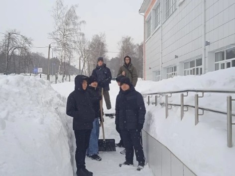 Помощь в уборке снега от студентов: чистота у корпуса и на танке Т-34 ...